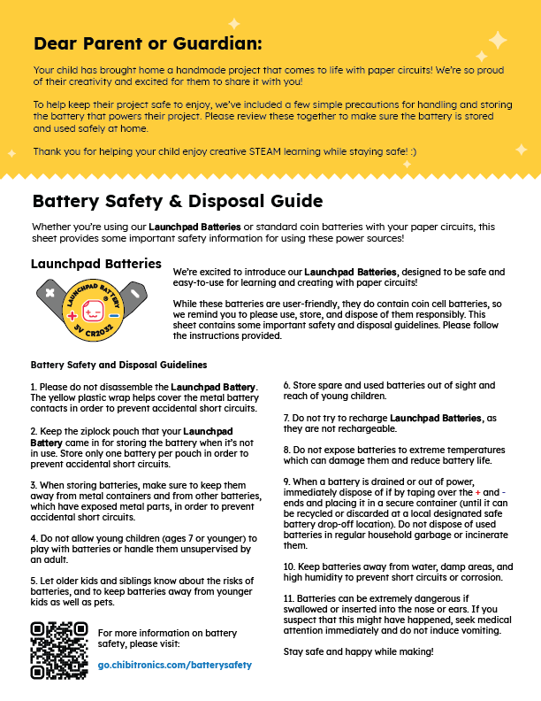 Are you sending home a paper circuit project with your students? Here’s a helpful letter you can include to share important safety tips with families!