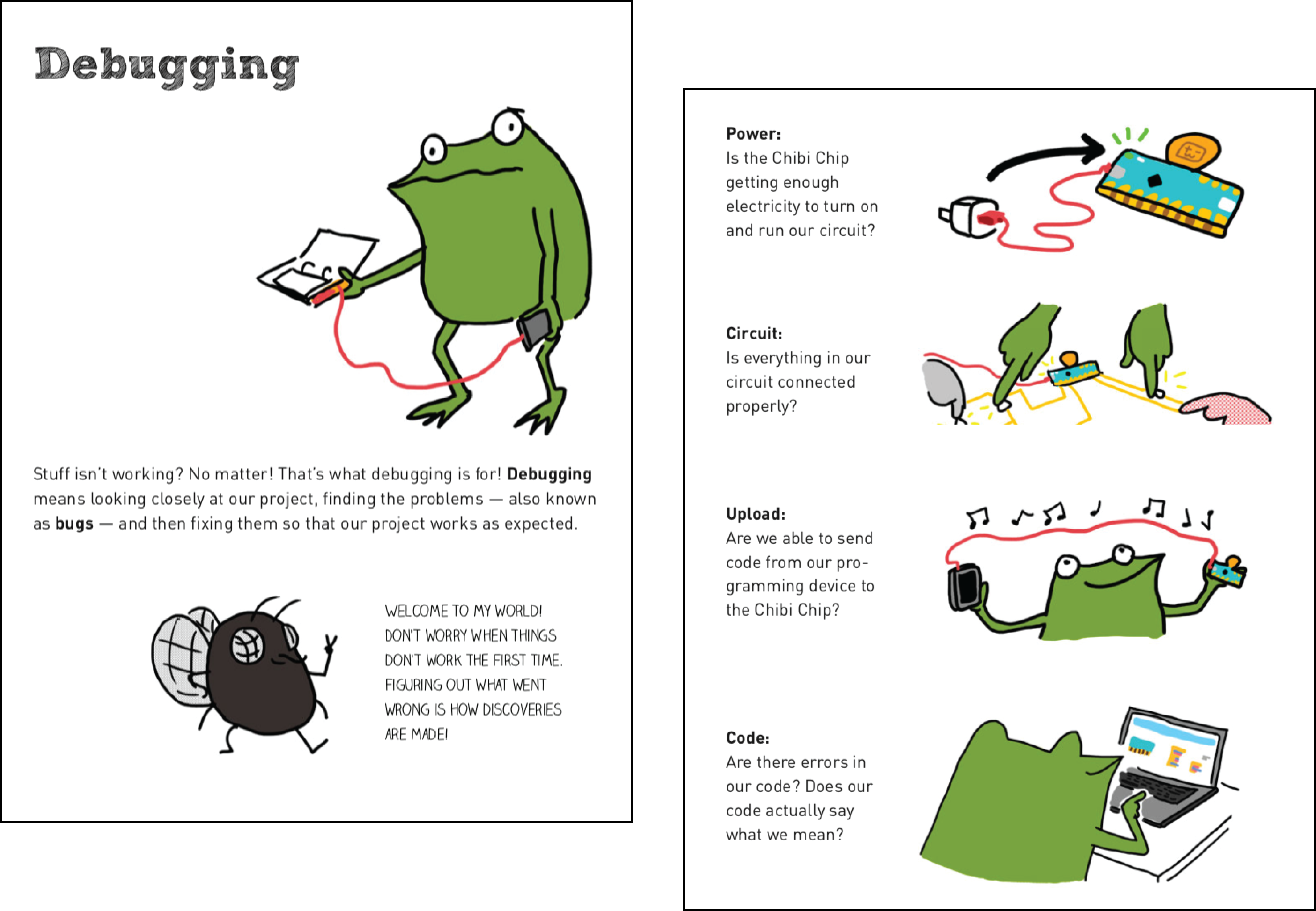 For Love to Code troubleshooting, we recommend our debugging chapter: here’s the ChibiScript version and the MakeCode version.