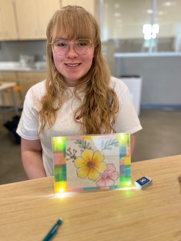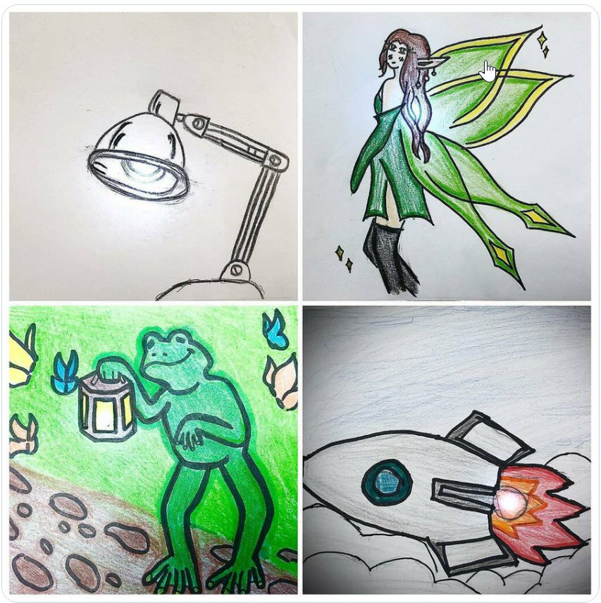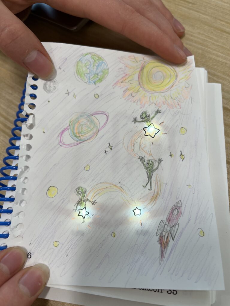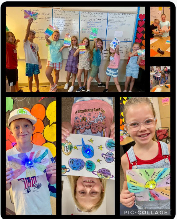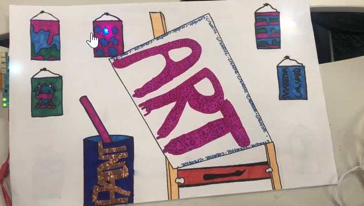 In September 2022, fifth grade SPARK students in Hope Loveland’s classroom at Union Park School in Arizona brought their art to life with circuits and coding. The screenshots don’t fully capture the magic of the hidden images that are illuminated when these creations are in action.