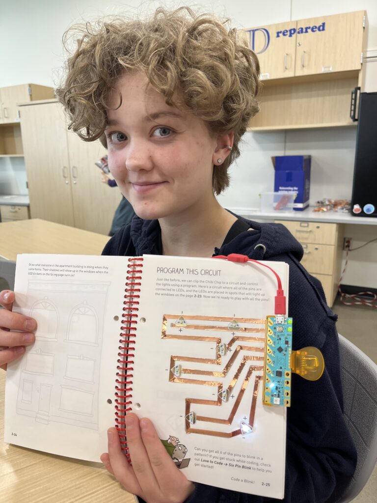 In June 2023, educators Sandra Bertelsen and Mary Persson ran a programming camp called “Code Possible: 2023” for North Dakota teens entering their sophomore or junior years of high school. One of the microcontrollers that they learned to program was the Chibi Chip.