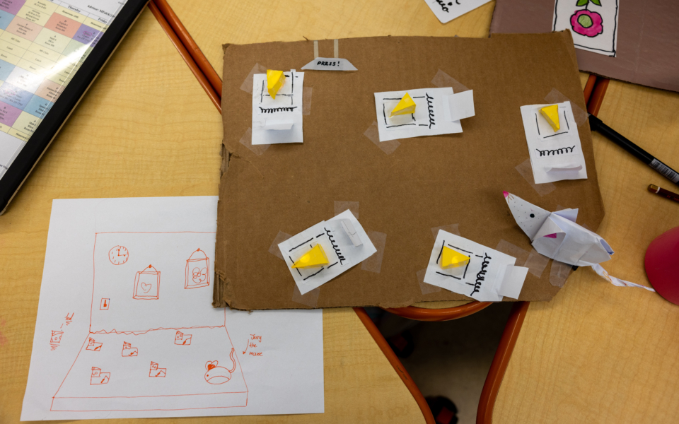 In May 2024, Catie Nasser (@catnasser) shared a menagerie of interactive artworks (with switches) created by some of her fifth grade students. “Their original ideas show simple circuits, buttons, and parallel circuits.”