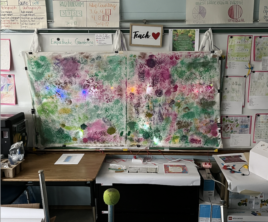 During the 2023-2024 school year, 4th grade teacher Lee Kessner and her students created and programmed an ambitious mural project, focused upon better understanding the role of pollinators in an “Empathetic Pollinator Garden.”