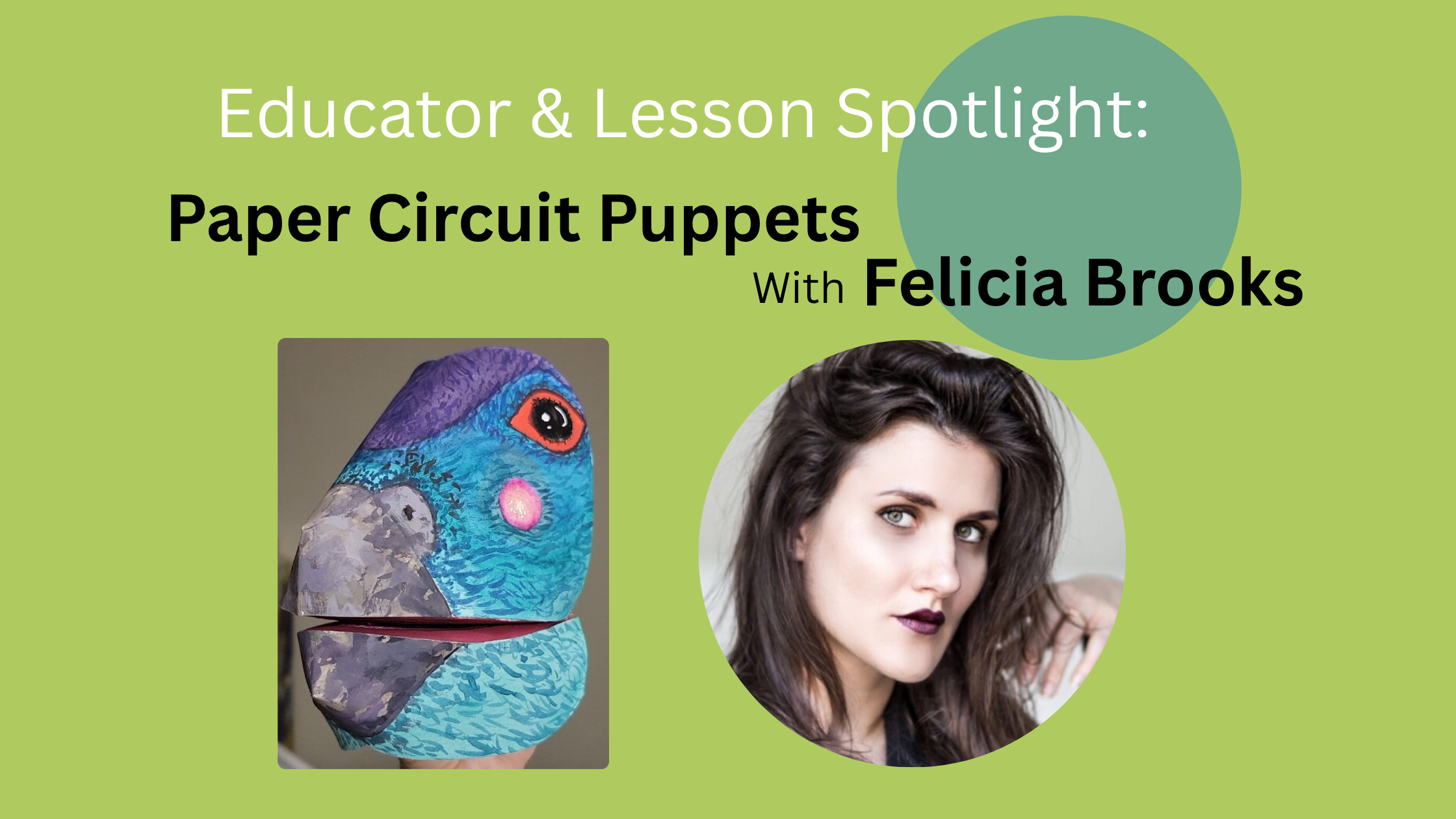 We met middle school art educator, Felicia Brooks, during our Summer Pathfinders course this past July! Her final project, a colorful light-up puppet with a pressure sensing mouth, prompted a collective gasp from viewers, and instant requests for more details.