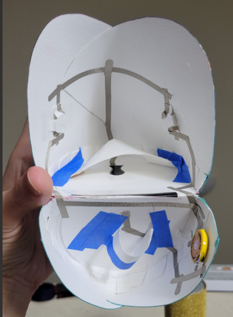 - Students easily took to creating 3-D mock-ups with white printer paper instead of just drawing flat ideas, which helped me to prepare for how to advise students on where to place their circuits throughout the puppet head for the final cardstock version.