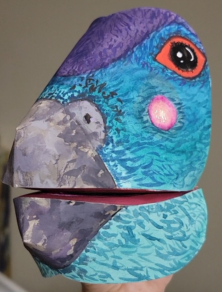 a. If you are choosing to use crayons or colored pencils instead of paint, invite students to color before they begin gluing the head together. It is harder to apply pressure for color saturation required for dry media once glued in the 3D form.