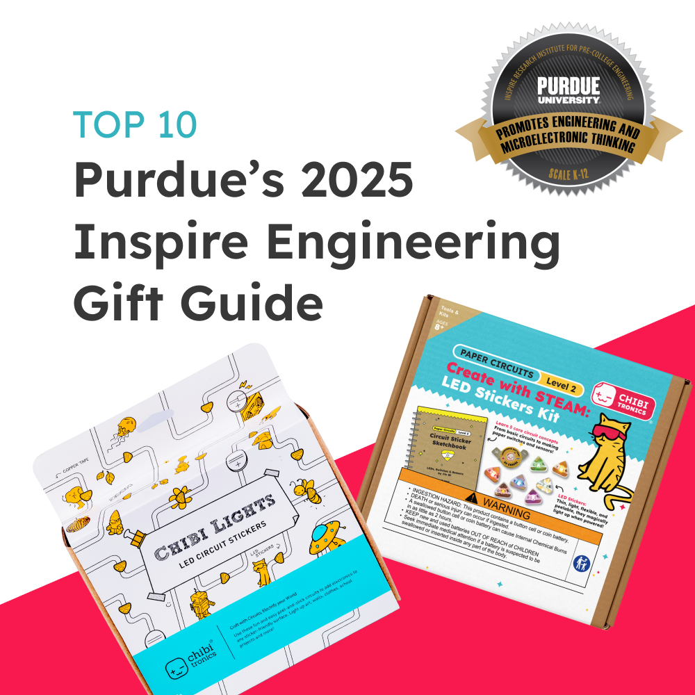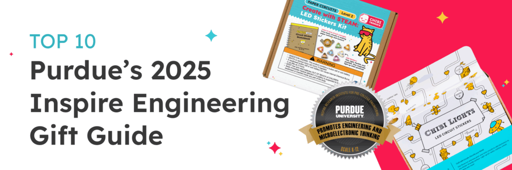 This year, two of our LED starter kits were reviewed and selected for inclusion in Purdue University’s 2025 Engineering Gift Guide: Microelectronics Edition — our original, best-selling STEM Starter Kit (ages 14+) and our NEW Create with STEAM: LED Sticker Kit- Level 2 (Ages 8+)!