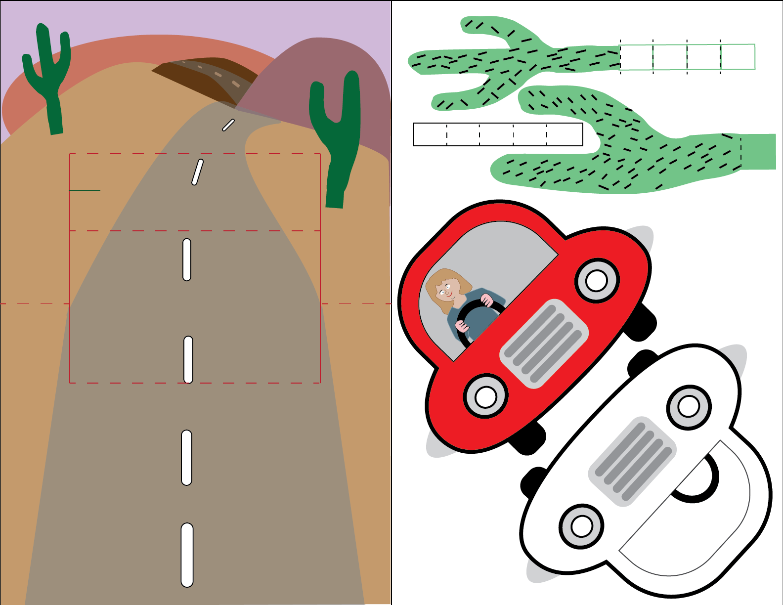 After cutting out your scenery and props, make incisions along the solid lines of the parallelogram.